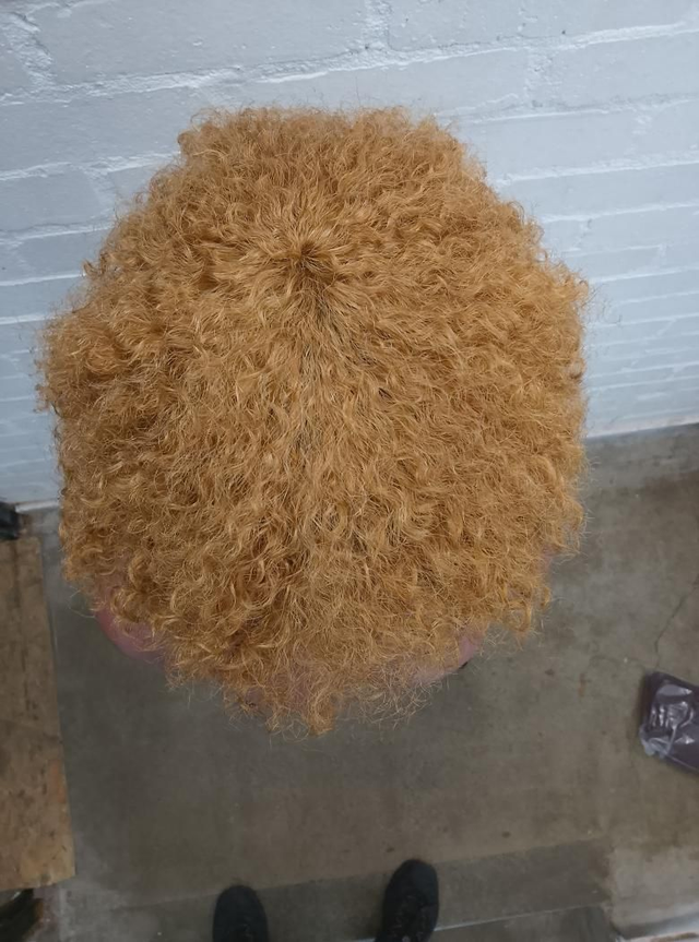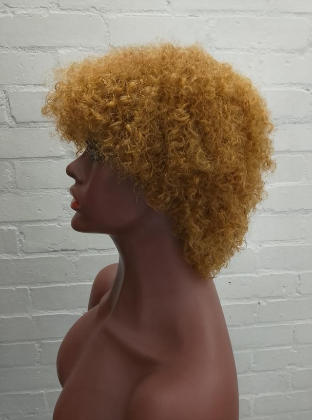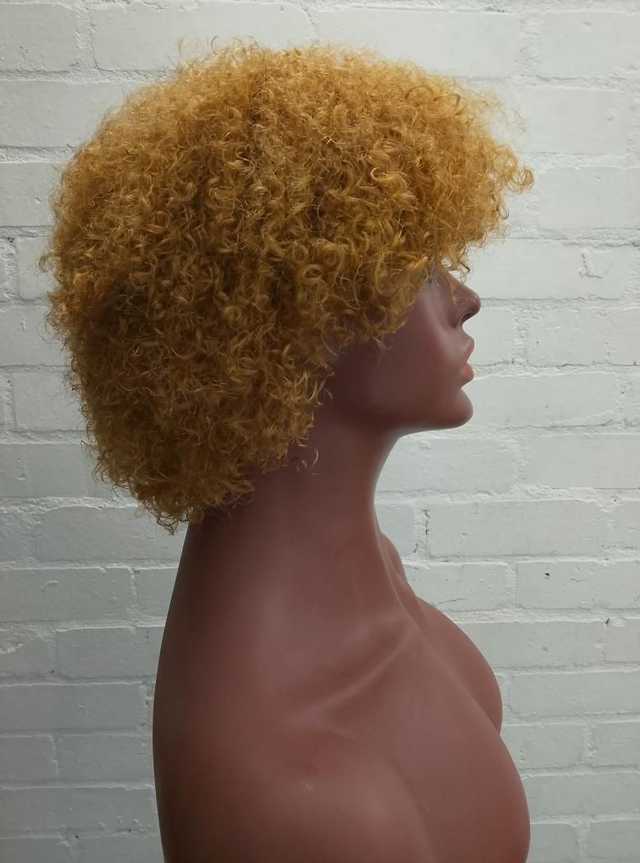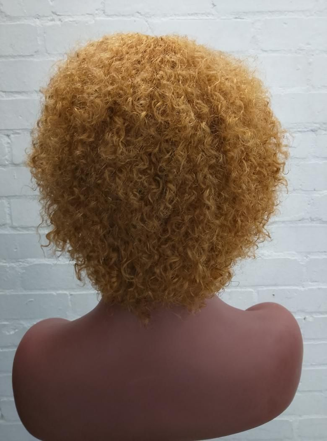 Brazilian Human Hair Jerry Curl Wig in Ginger Blonde.